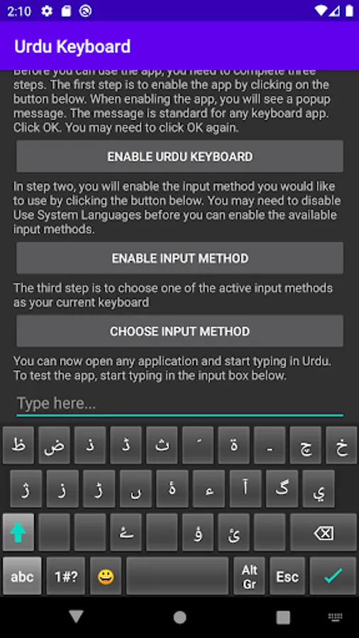 An easy to use keyboard app for Urdu