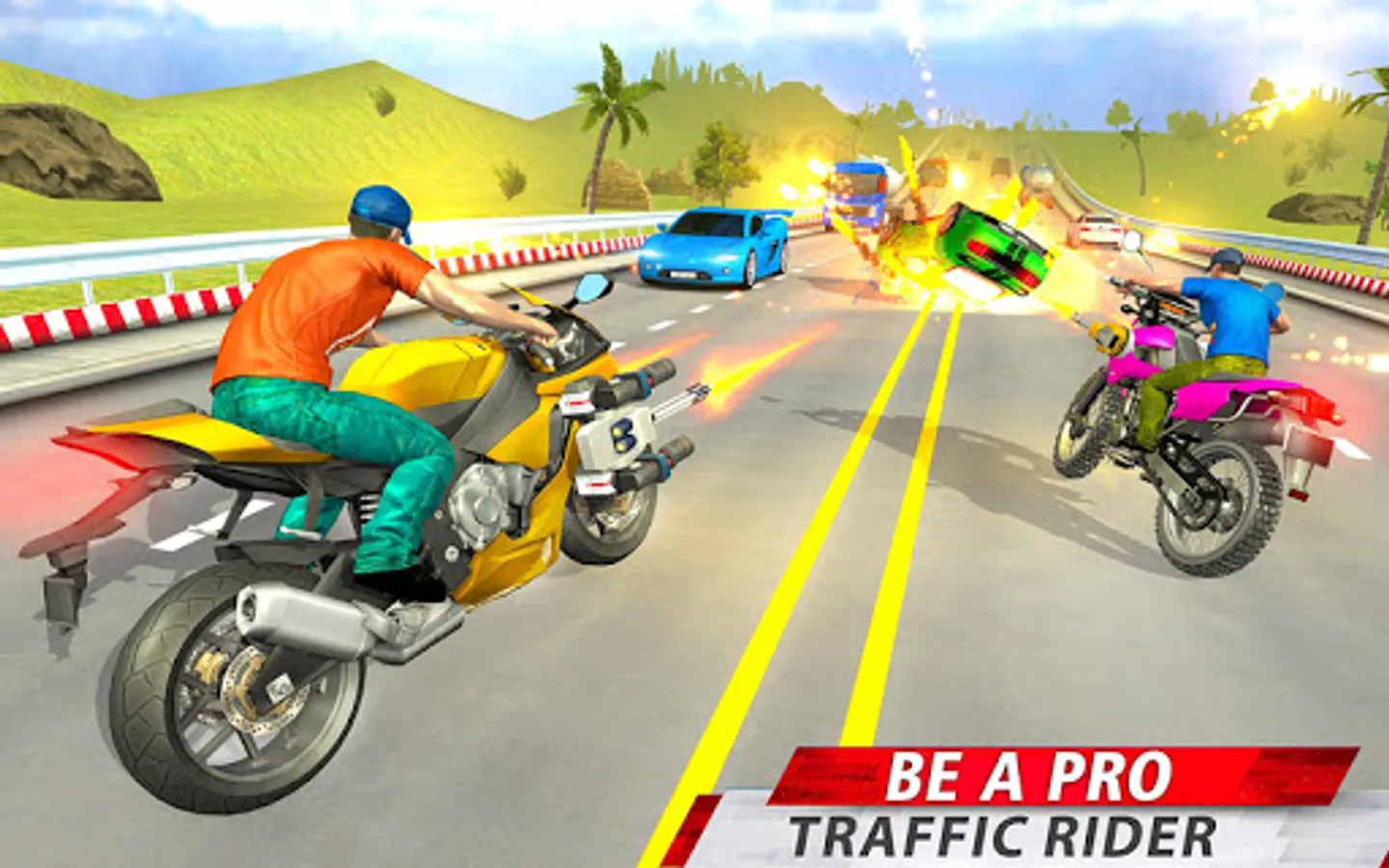 Do the speed racing stunts on variety of shooting gun bikes with exciting bike attack in this bike games 2023. Real bike shooter of racing games and bike games, you have to act as a clever bike racer for bike stunt 3D games. we can say this gun bike race claims to be best gun bike driving games amongst the rarely available bike games. Various challenging modes offer varying difficulties with new missions, but the new missile mode is really exciting and filled with extreme bike driving games thrill. Select your gun bike and select a machine gun of your choice bike and set on bike stunt games journey of 3D Bike Shooter 2023 and highway traffic racing games.
