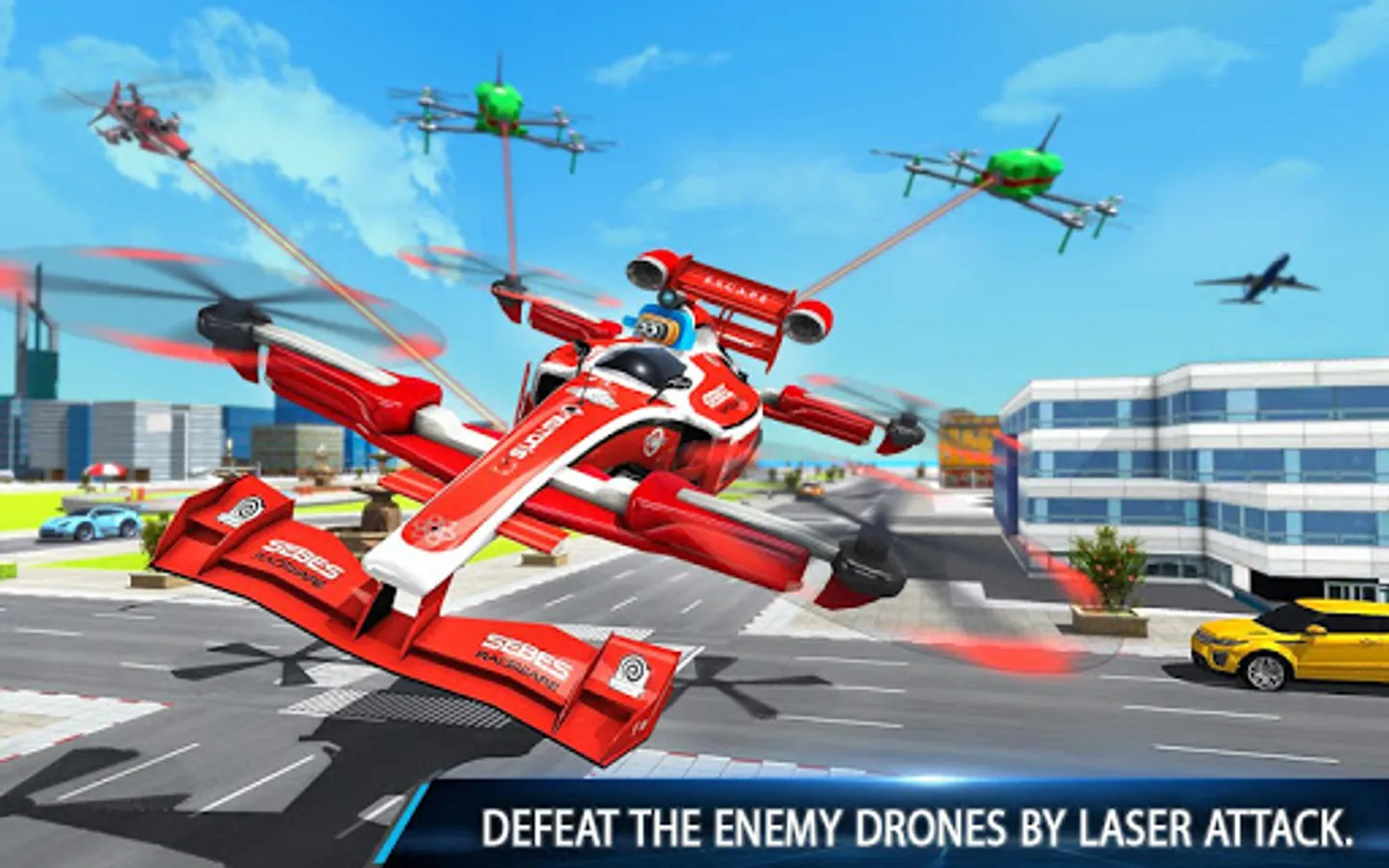 Are you ready to have fun with flying formula car driving that is the form of futuristic drone? Let’s get in flying car simulator games, choose your favorite formula car and fly in the most realistic 3d environments provided in this drone shooter game. This flying formula car game encloses the amazing concept of flying car games joined together with formula car shooting games 2022. Apart from having ultimate joy of formula car driving games, this formula racing game will offer the arena of battle to fight with enemy drones, unlike other drone shooting games. So be prepared yourself for the challenging car shooting missions against futuristic formula car drones within flying car simulator. A lot of hurdles will dare you while flying formula cars in futuristic drone games merged with formula car games.