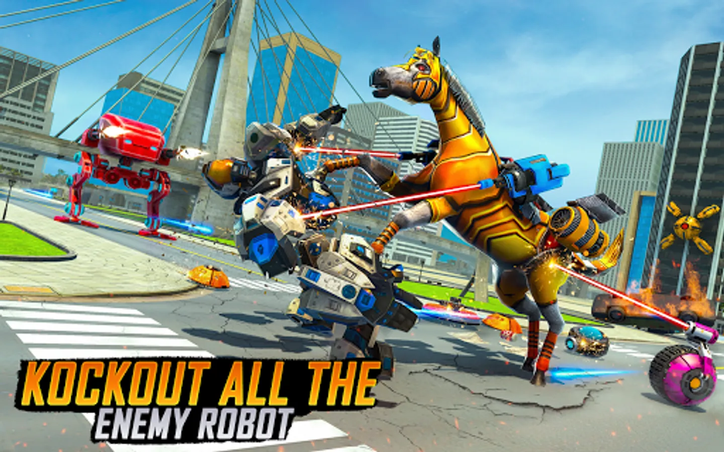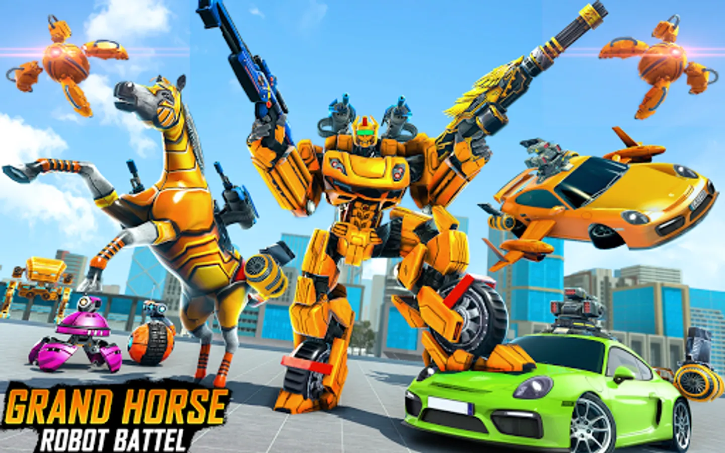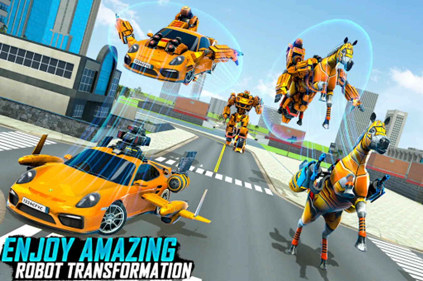 If you love real horse robot transforming games with ultimate robot car games to play, this robo chapter is team battle in city and jungle with robot transform car war. With your team of robots, this multi robot transformation is mech robots shooting game. This robot horse game as robots gearsofwar will offer a huge variety of multi robot transformation along with flying car shooting missions to fight against evil mech robots. Indulge in this horse robot shooting games will give the real challenge of playing robot car war within this robot car simulator. So, grab all in one combination of car robot transforming games & robot gun games in the latest animal robot car game. If you are addicted to playing robot fighting games, this robot car transform war will be the ultimate experience of horse shooting games in this robot games.In horse robot game - Be multi robotic warrior in macha robo games with driving and flying skills to test. With racing car transformation be a best driver on multiple terrains to spy with drone robots in hand..
