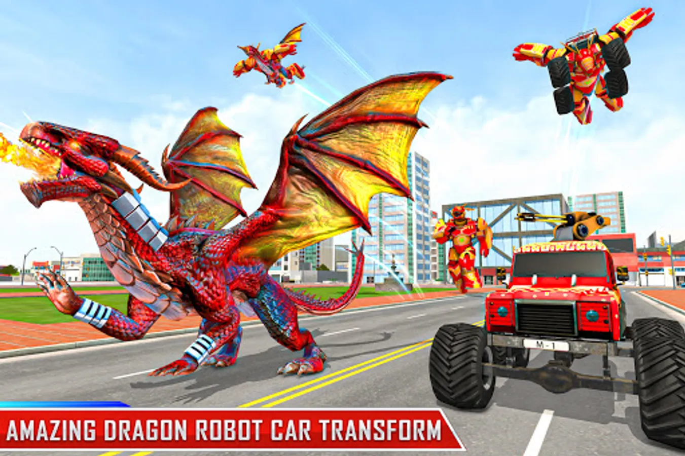 In this robot shooting game, fight for your survival and win the robot wars of robot transforming games. Stand in front of enemies like a pro shooter and kill them to accomplish your mission. Are you excited to view monster truck transformation? If yes, let’s shoot all the evil robot and destroy all enemies in robot shooter games by using your breath fire & shooting power. Transform into monster truck robot and fight and survive till last in the robot war games. Spread your wings and feel free to fly in flying dragon robot games that encloses the excitement of car transforming games.