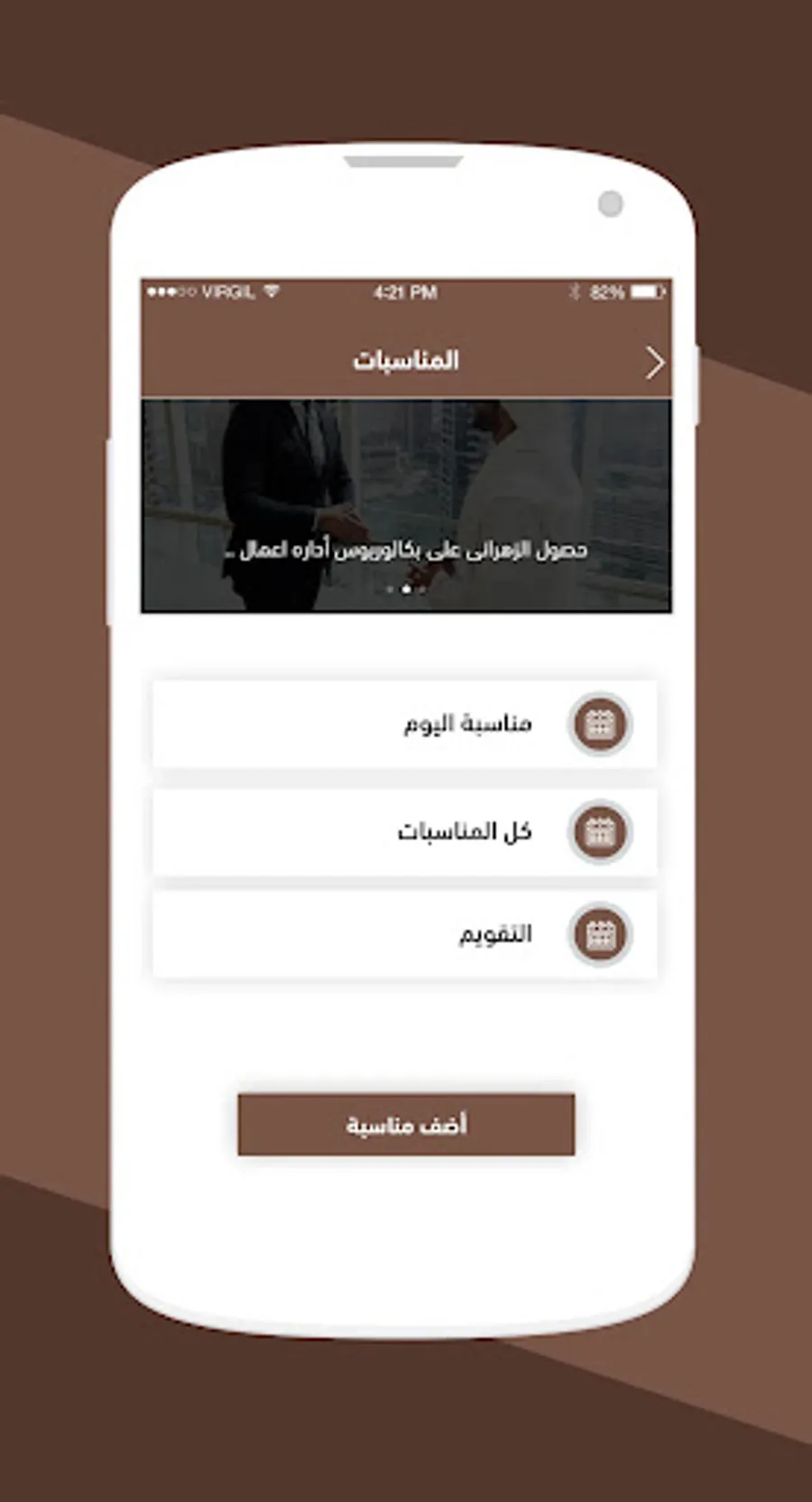 And events are also measured according to the date through the calendar in the application is selected date and display all the events approved and in other there is an option in the application "Events of the day" contains all events for the current day for easy access, and also supports the application notifications and the possibility of adding news and events of the tribe
