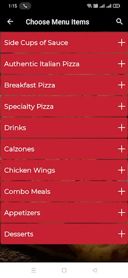 - Menu item search
