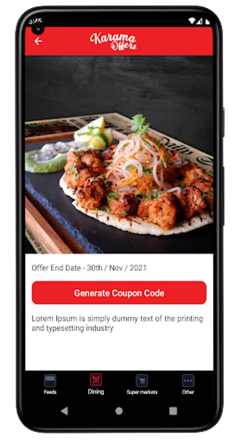 An App which lists all offers which are available in and near Karama UAE of Supermarkets, Restaurants, Saloon etc.