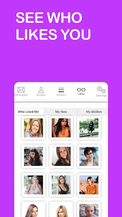 β’ Who Likes Me β skip swiping and see women who liked you immediately and match with them right away.