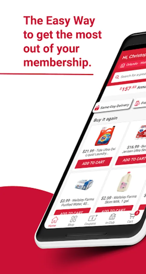 o View the products you've recently purchased in-Club or via Same-Day Delivery and easily Reload them to your cart.