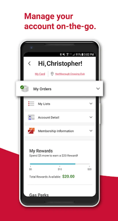 o One-click access to all your Membership details, My Rewards, order history, track challenges or scan your Membership card.