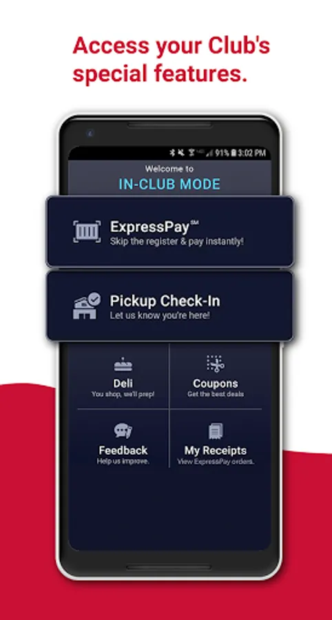 o No need to wait in a checkout line. Easily shop, scan your item’s barcode, pay within the app, and go! (Available in select clubs only.)
