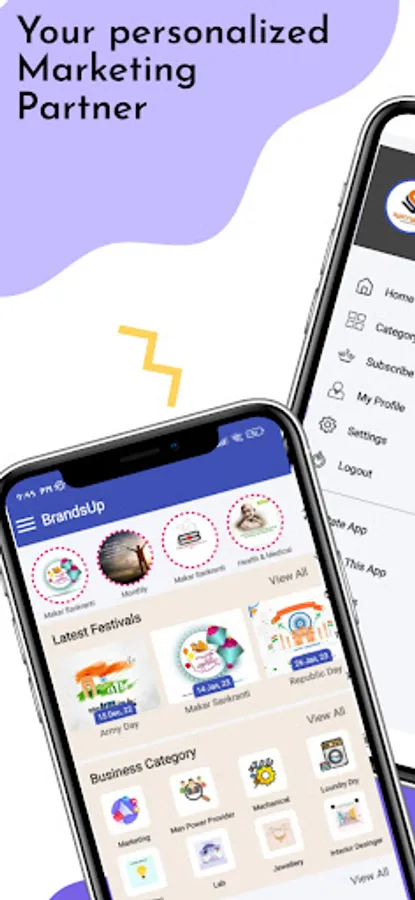 BrandsUp is a mobile app where businesses, Political People can make banners for Social media & Post & share these banners or Poster with their own details.