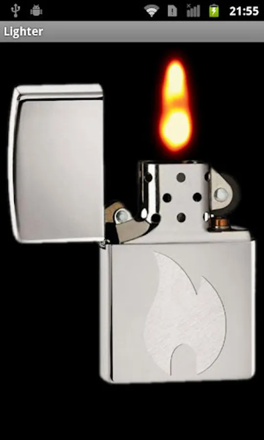 Move your device to the left to open the lighter, move it to the right to close it. You can also fling the lid with your finger to open it.