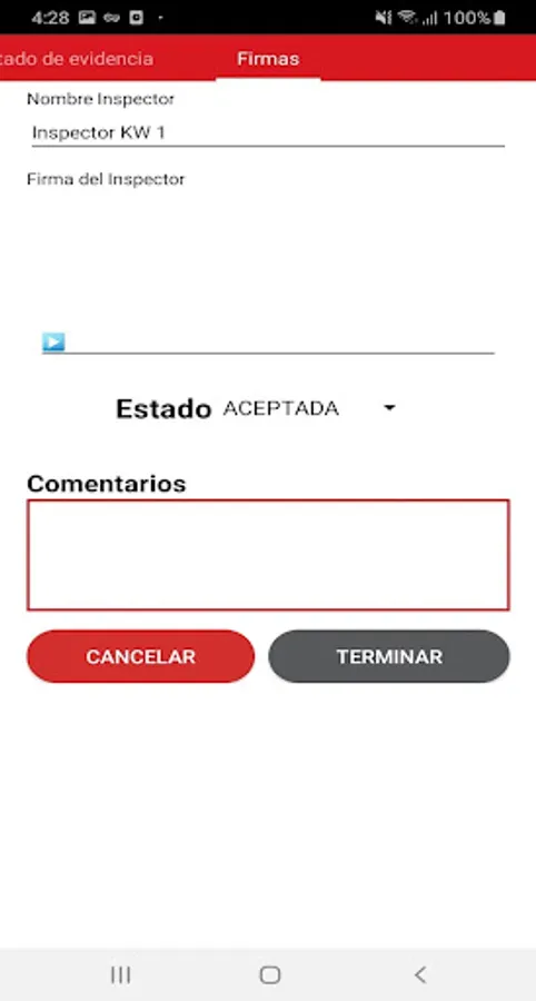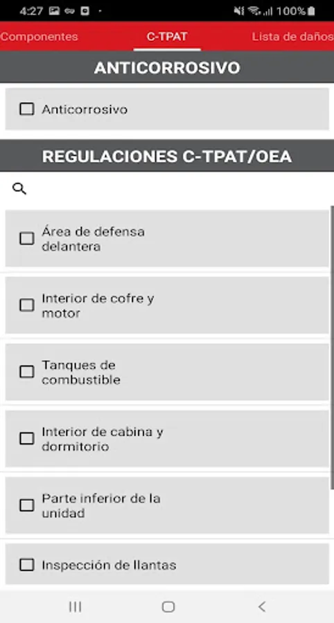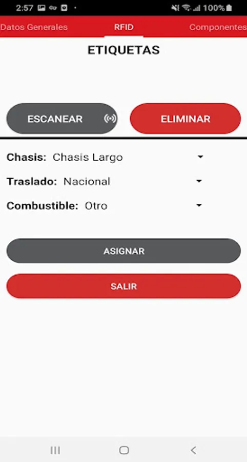 Damage capture of the unit, check list of the internal and external components that the unit has, RFID tag assignment as unit identification and fuel measurement.