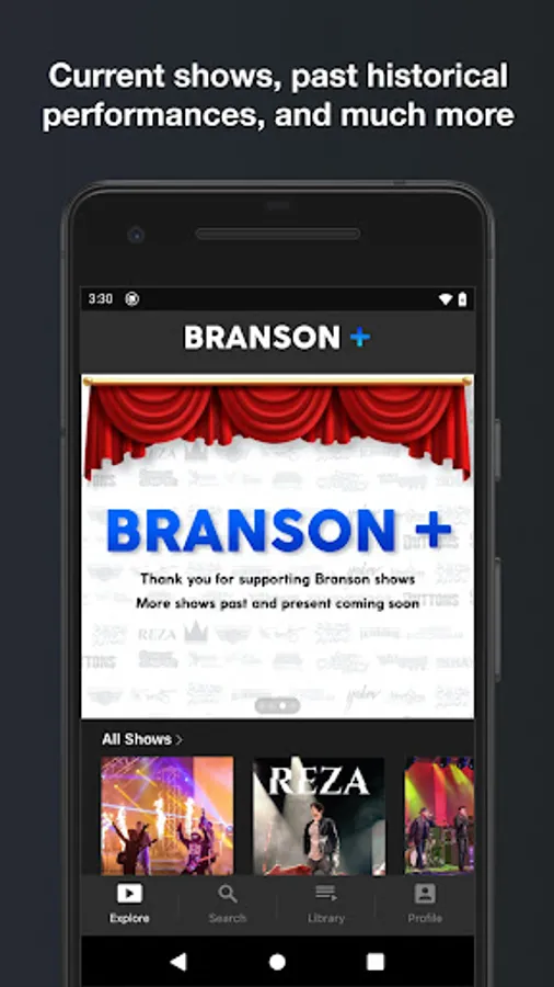 • Access to your favorite current Branson shows, timeless classic performances, and much more