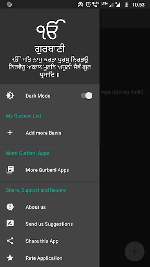 You can choose the theme between light or dark mode depending on your choose in dark mode its easy to read Gurbani at night.