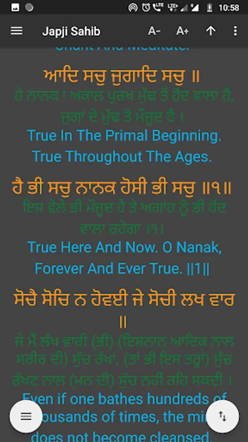 You can change the size of Gurbani text bigger or smaller and choose if you want to read in Italic or in Bold or Both.