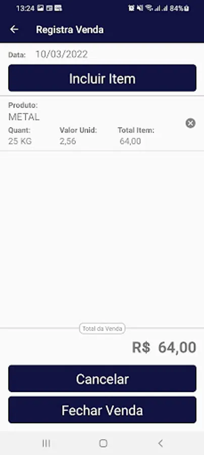 Sales and purchase management app, containing sales, products, purchases, expenses, movement by day.