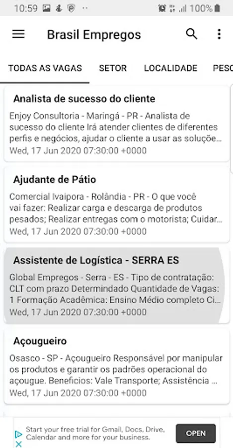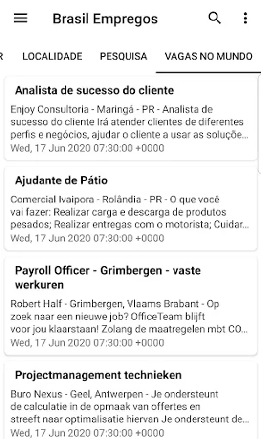 In addition to vacancies in Brazil you can also find vacancies in the rest of the world
