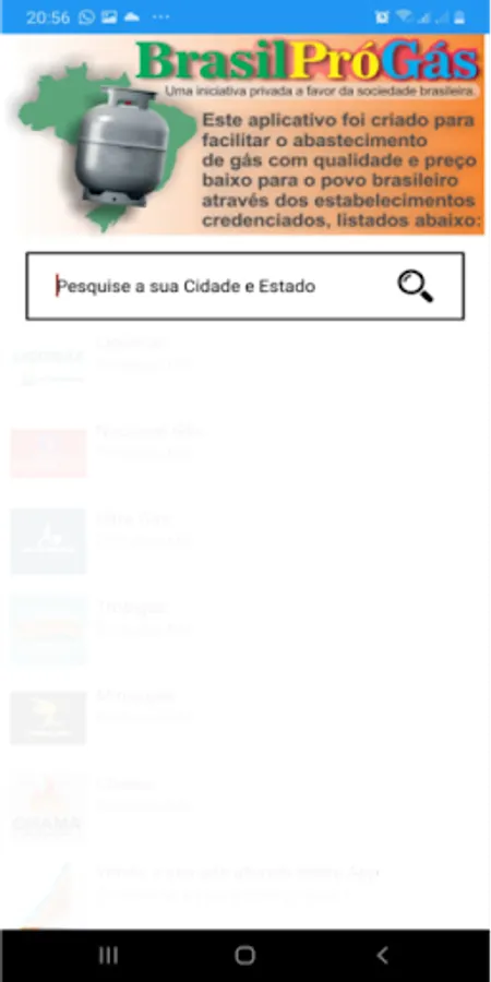 Through the Brasil Pró Gás application you can purchase gas and mineral water for the lowest price in your city, with an intuitive interface you can easily place your orders, on the first screen of the application you search your city and your state so that a list of accredited establishments to provide you with the product in your region is shown, by clicking on one of the establishments you open a second screen to be able to choose your product and place it in a virtual cart, at the end you click on the virtual cart that is located in the lower right corner of your cell phone screen, fill out a form with your data and submit the order. This is the fastest and easiest way that current technology offers for you to order your gas and mineral water.