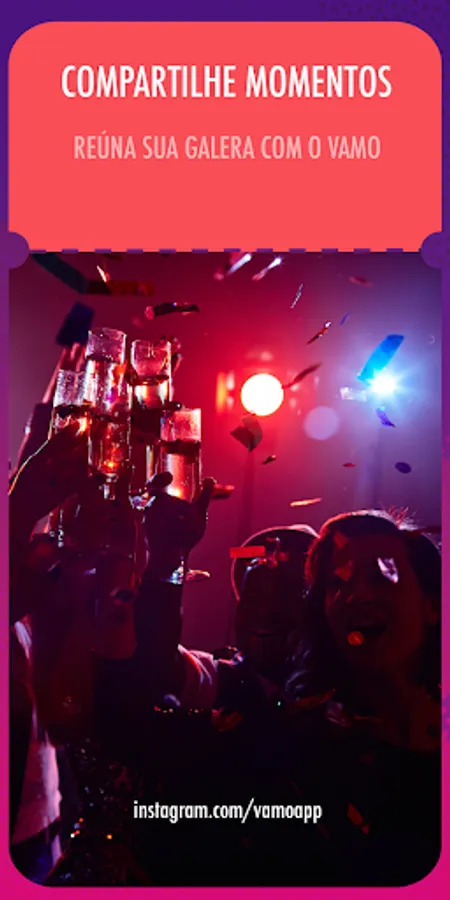 At Vamo you will find the best parties, courses and workshops at the best prices. We charge the lowest service fee in the online ticket market to ensure you never miss out on your favorite event. Count on a modern and 100% safe application that has already been tested and approved by more than 100 thousand customers throughout Brazil.