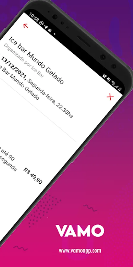 With Vamo, your ticket is available directly on your cell phone and is always at hand. To access the event, just open the app and show the ticket: the responsible team reads the code using a specific validation application and that's it! In a matter of seconds you are ready to have fun - no queuing, no fraud, no lists.
