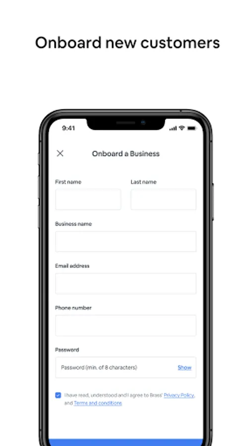 The Brass Sales Agent app is designed to help sales agents onboard new customers and give the agents an avenue to earn extra cash.