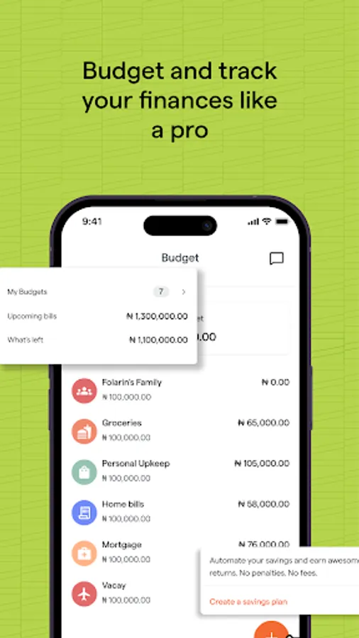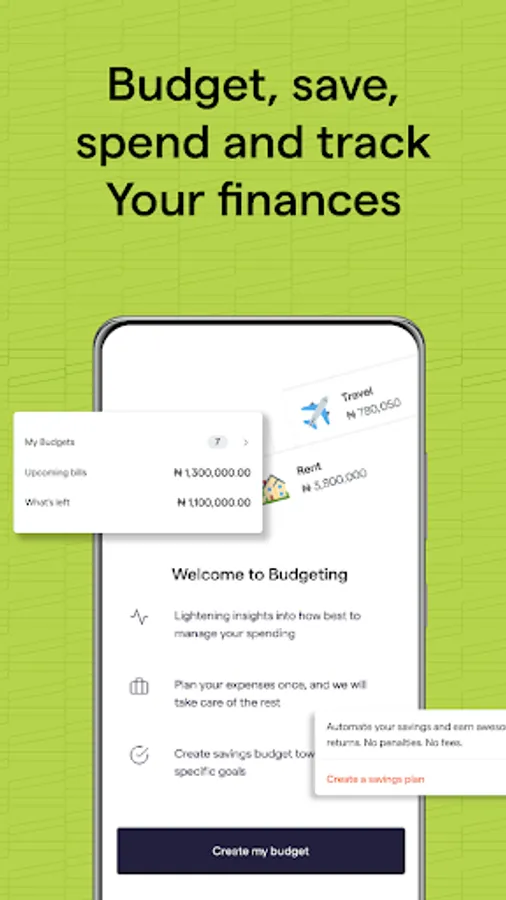 Manage your finances better as a working professional with our budgeting feature. With it you can budget, save and track short and long term expenditures e.g. vacation, house rent, family building, wedding etc.