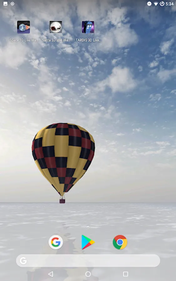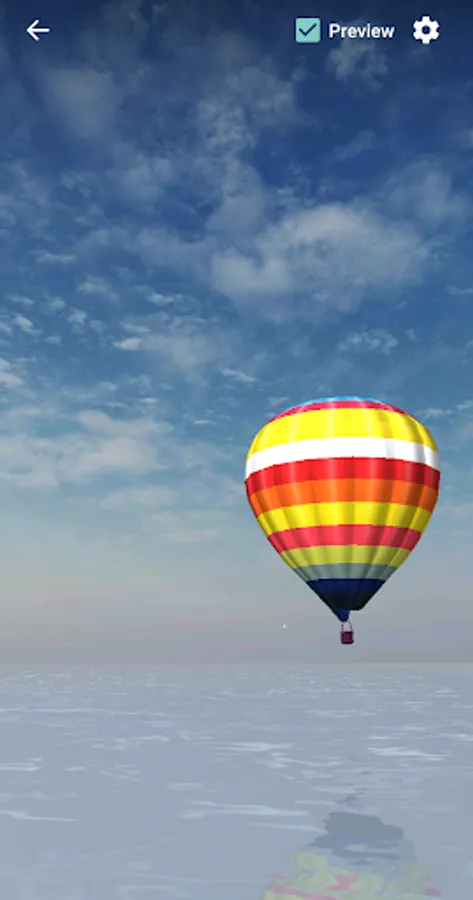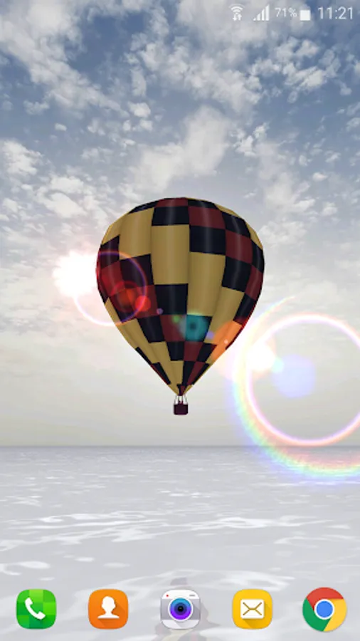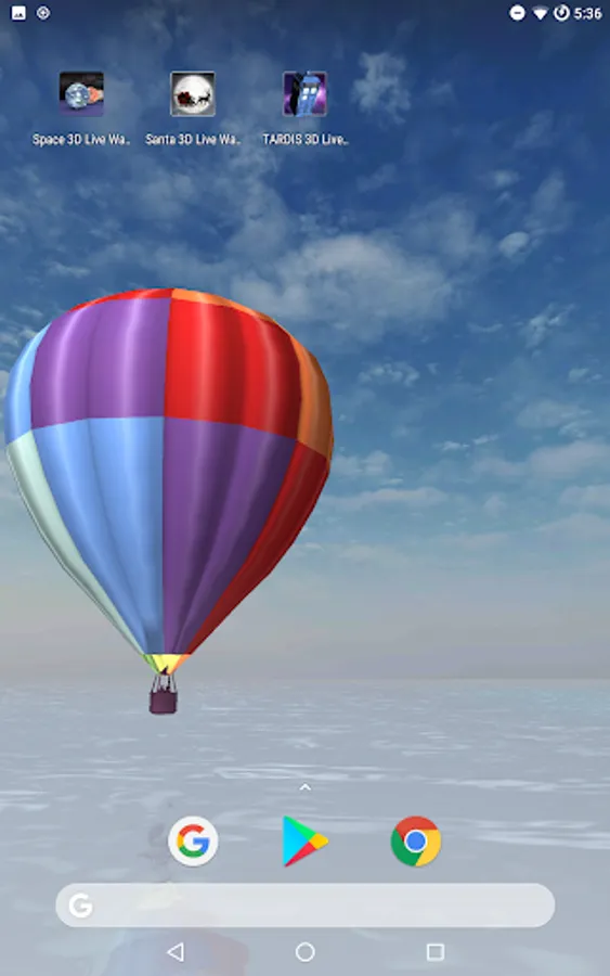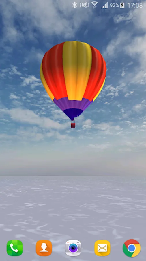 Change your wallpaper into a fully animated 3D hot air balloon. Travel over the calm seas and enjoy the peaceful hot air balloon as your phone or tablet's realistically rendered background.