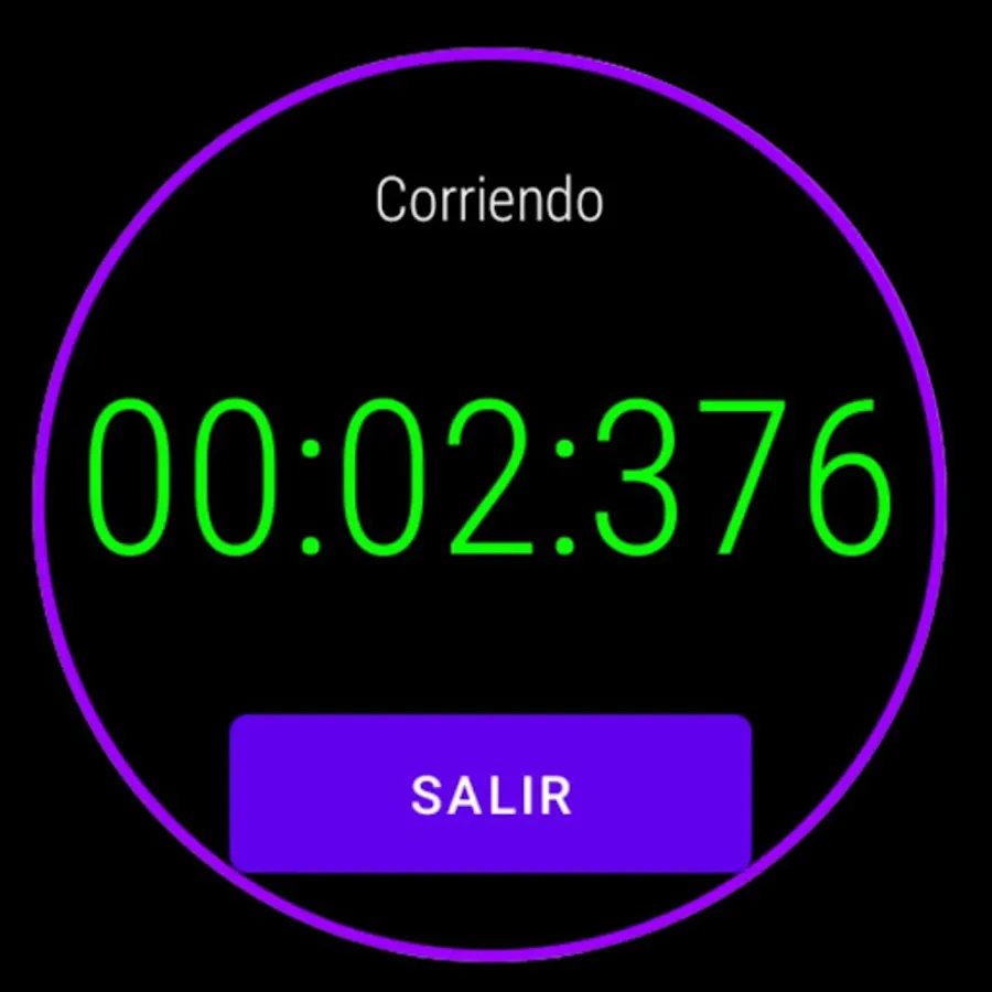 Special stopwatch for sport. To start and pause the physical button on the back is used. Wear Os.