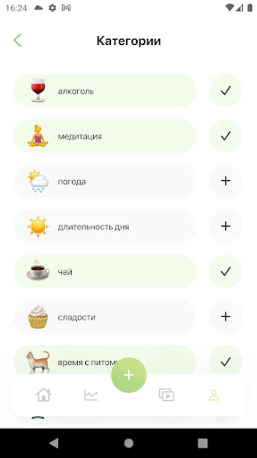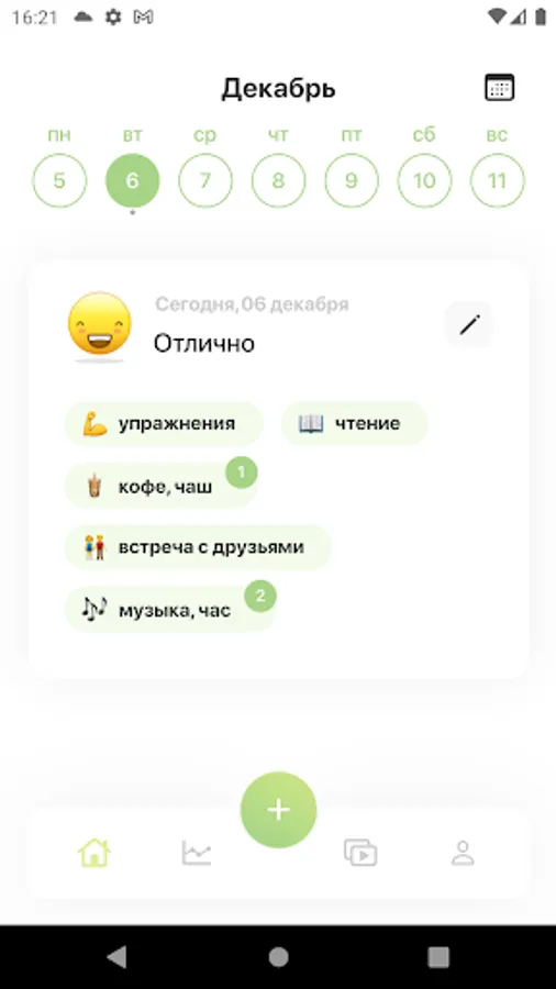 Select only those parameters and activities that you want to track. Sport, time with your friends, cups of coffee or even your own activity.