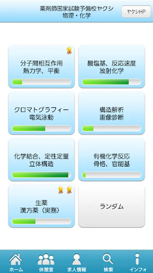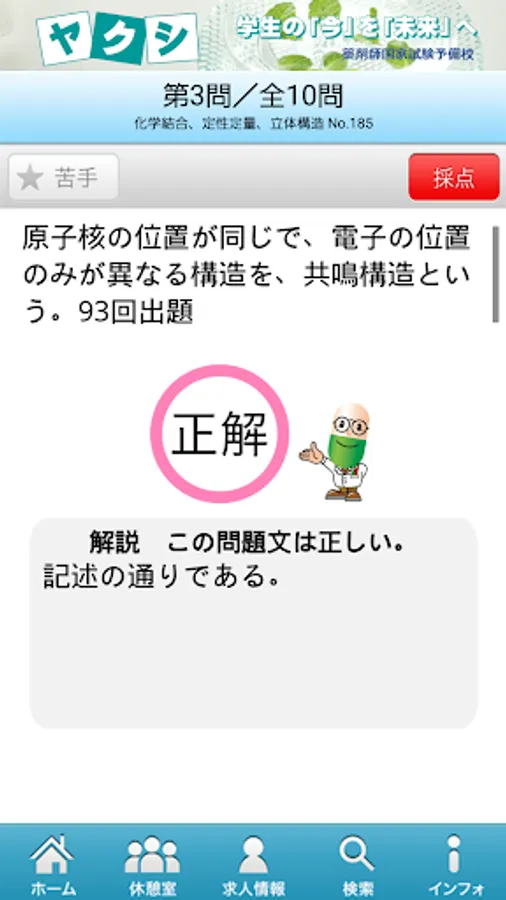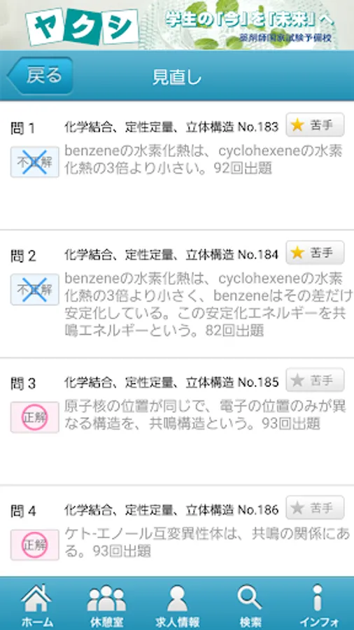 ・「検索」…好きなキーワードを入力して問題を検索できます。(98回、酸性度、置換…など)