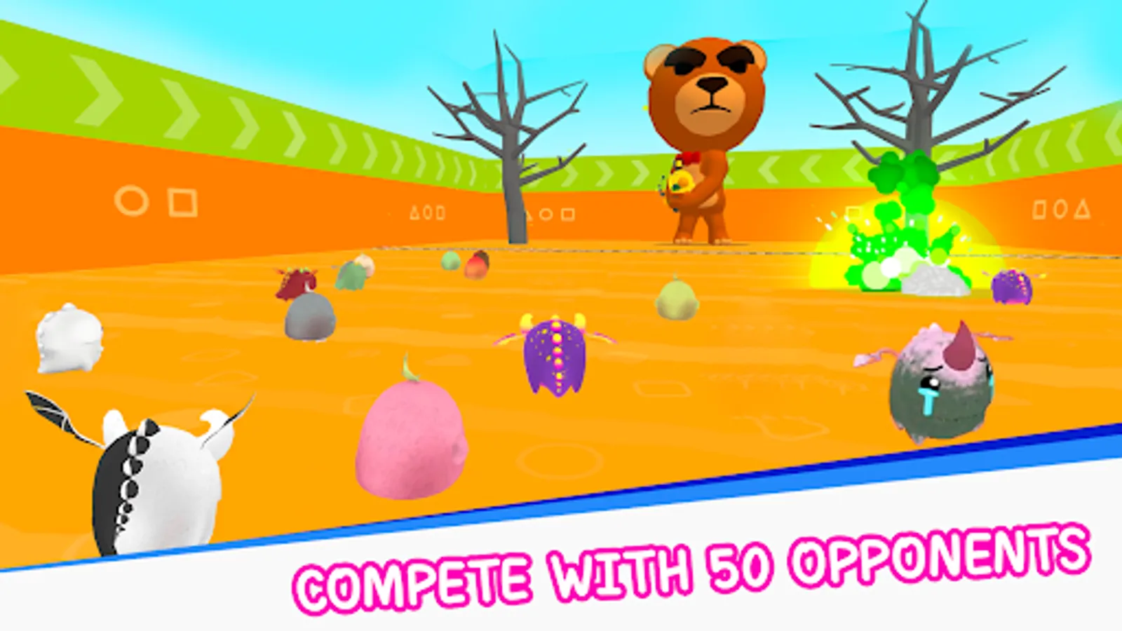 There are 2 rounds and 50 players. You have to race, pass at least 30 opponents to reach the top 20 fastest finishers, and participate in round 2. In round 2, help your dinosaur not fall down to become the only one on the ring. Then conquer the crown.