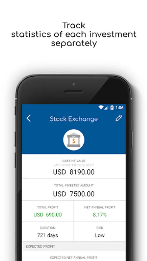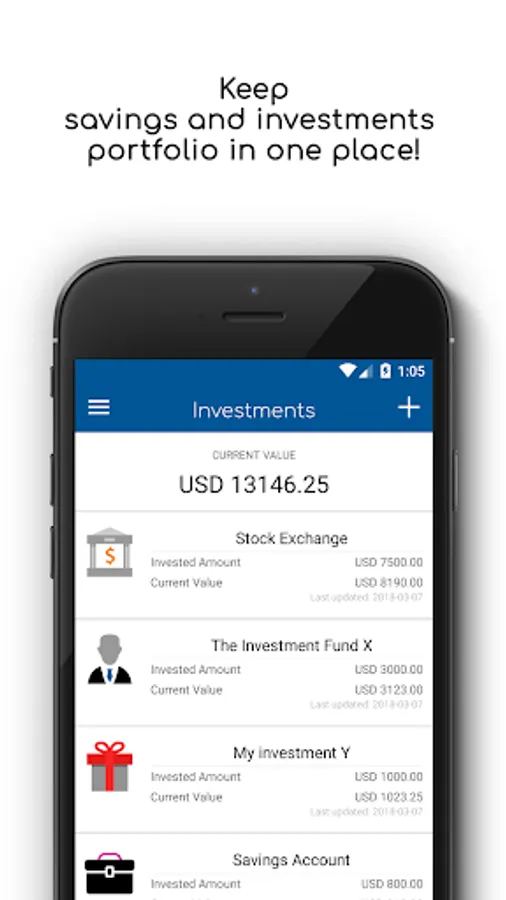 Investo do not have access to finance accounts, transastions, logins and your private passwords. You add all data manually (or automatically) and it is stored internally on mobile device. Protecting your identity and personal data is a top priority for Investo app. Investo will help to track all savings and investments.