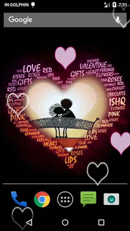 Direct to heart! Now reach direct to the heart of your loved ones with help of Love Frame live wall paper. Vivid option enables you to give different effects to this wall paper. Just in case you hand over your phone to anybody the default setting option will allow you to change the wall paper in few seconds.