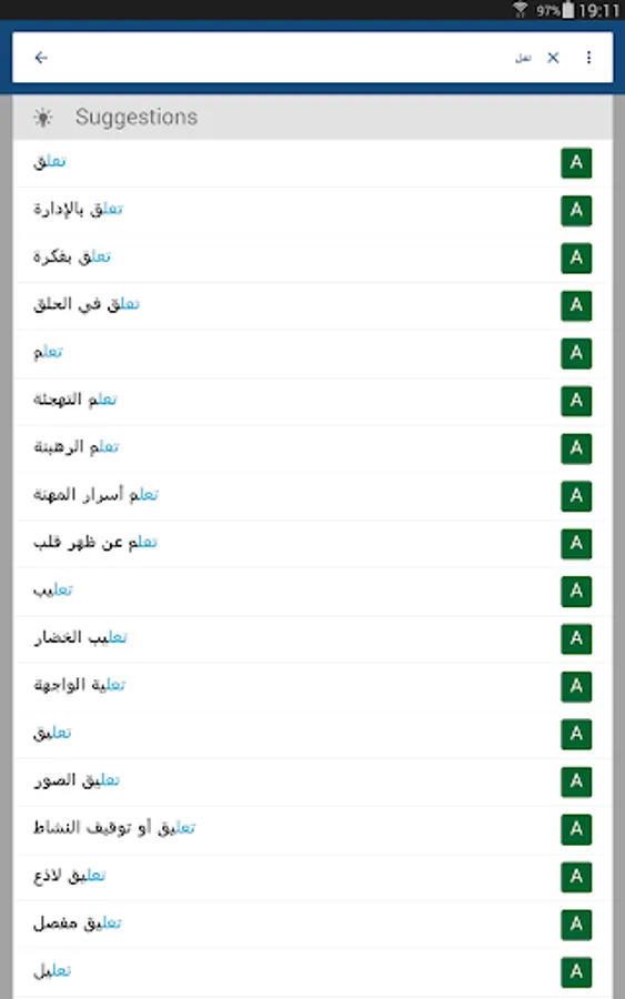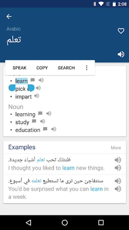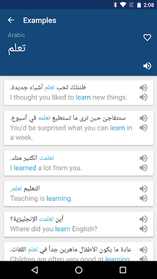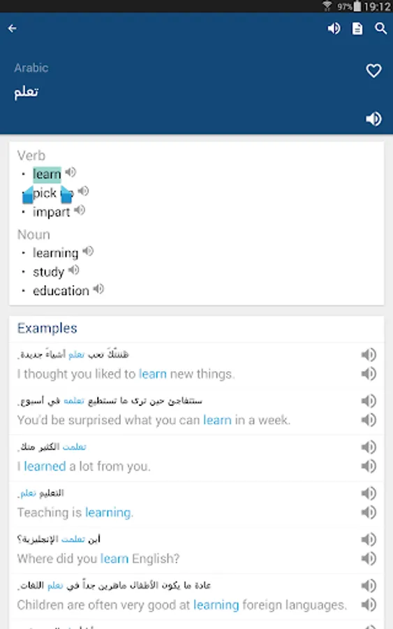 The Arabic English Dictionary & Translator app enables you to search Arabic & English words with definitions, examples, pronunciation, and more.