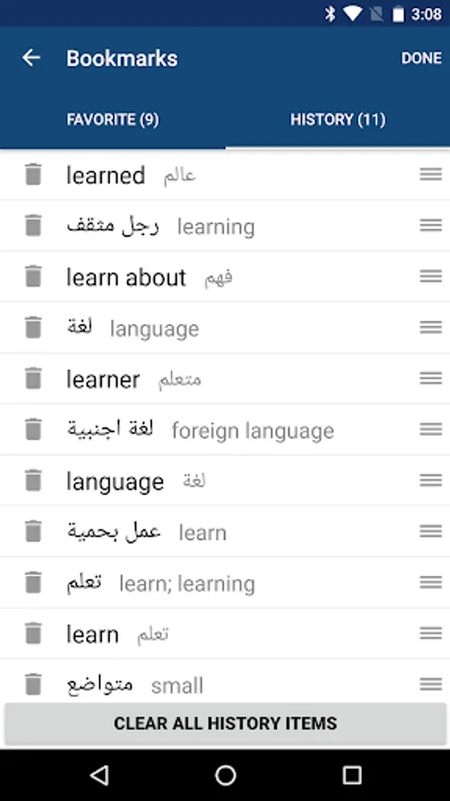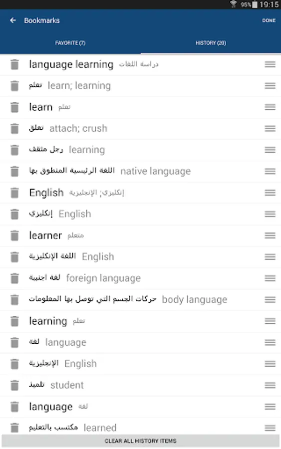 - Favorite words & search history