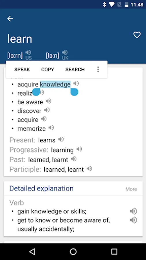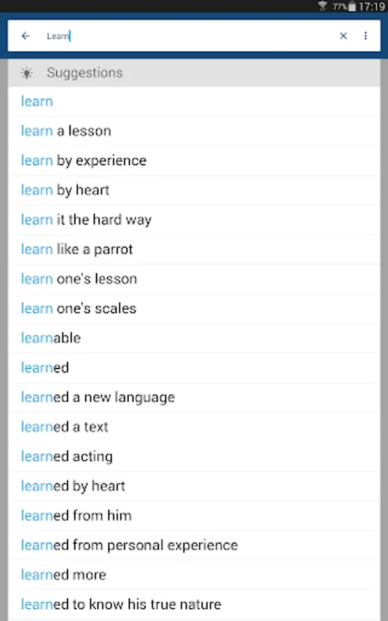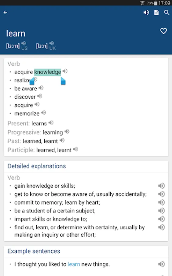 The English Dictionary & Translator app enables you to search English words with definitions, examples, pronunciation, and more.