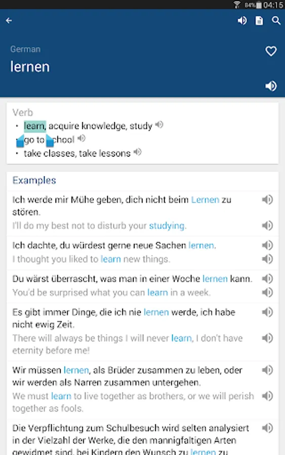 The German English Dictionary & Translator app enables you to search German & English words with definitions, examples, pronunciation, and more.