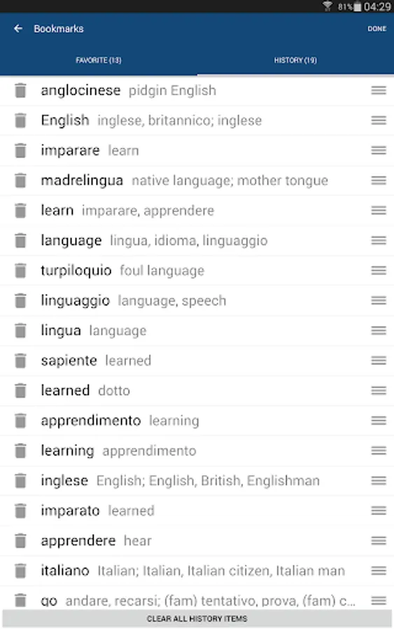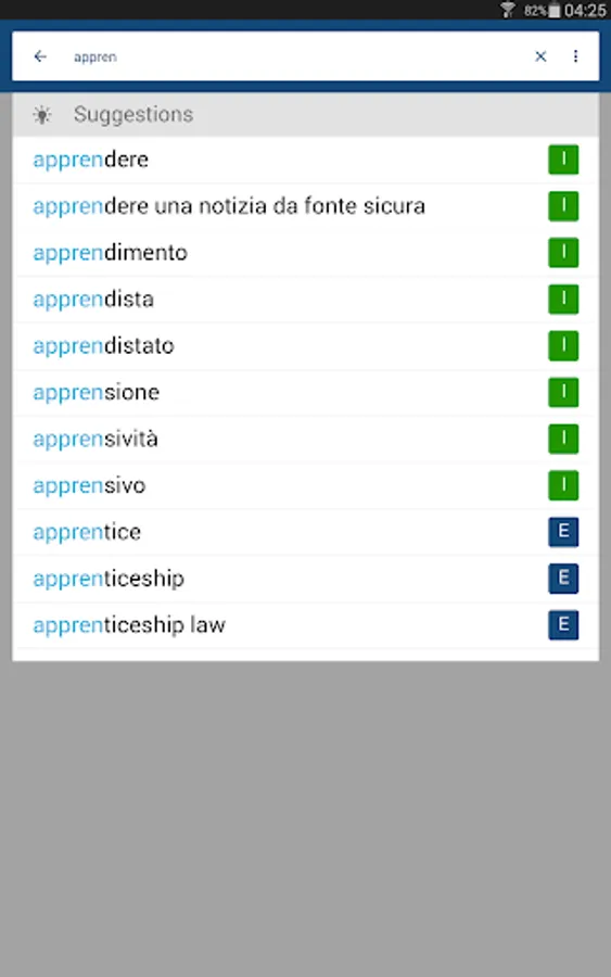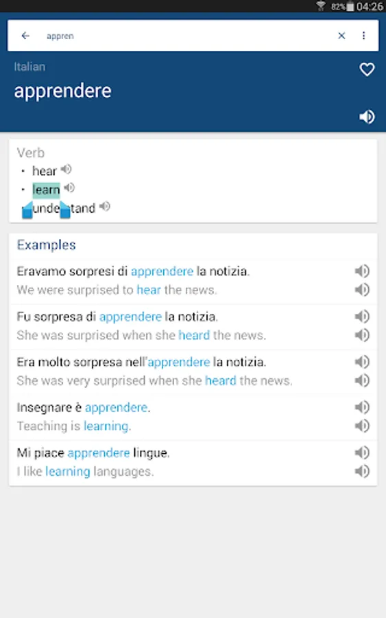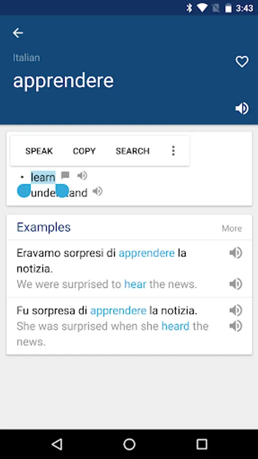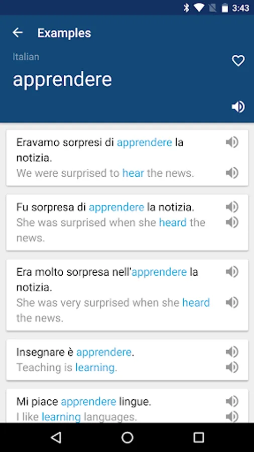 The Italian English Dictionary & Translator app enables you to search Italian & English words with definitions, examples, pronunciation, and more.