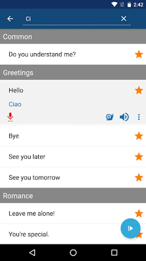 When traveling to Italy (e.g., Rome, Venice, Florence, Milan), make sure you bring the app with you! Ideally you listen to a phrase and repeat it, but if your accent is terrible, you can play the voice on the app to local Italian people (e.g., a waiter or store clerk). Language barrier while travelling abroad will no longer exist!