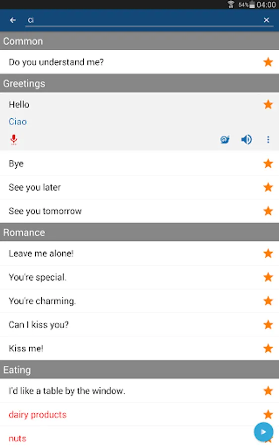 The “Learn Italian” app has many useful Italian phrases and words (e.g., “Thank you!”, “How much?” or “A table for two, please!”). When you tap a phrase, the app speaks it aloud. There is no guessing as to how to pronounce the words. And if the app is talking too quickly for you, simply tap the snail icon to hear the words more slowly. And if the app is talking too quickly for you, simply tap the snail icon to hear it more slowly. Listen to pronunciation recorded by native Italian speaker and then record and play back your own voice to practice your Italian speaking skills!