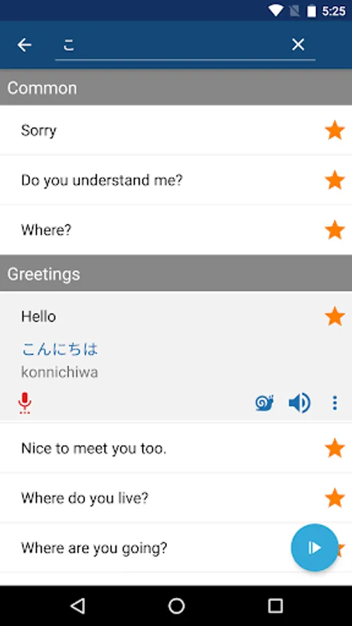 The “Learn Japanese” app has many useful Japanese phrases and words (e.g., “Thank you!”, “How much?” or “A table for two, please!”). When you tap a phrase, the app speaks it aloud. There is no guessing as to how to pronounce the words. And if the app is talking too quickly for you, simply tap the snail icon to hear the words more slowly. And if the app is talking too quickly for you, simply tap the turtle icon to hear it more slowly. Listen to pronunciation recorded by native Japanese speaker and then record and play back your own voice to practice your Japanese speaking skills!