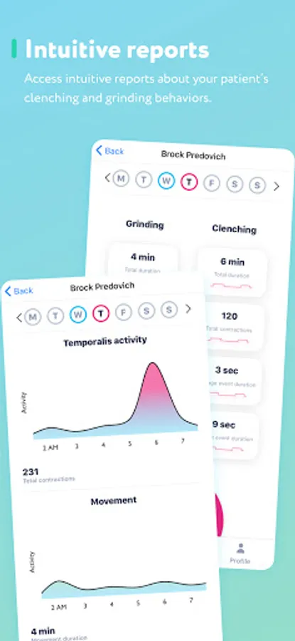 Access all your patients grinding and clenching data in one, easy to use app. Prescribe BruxRelief wearable headband and app to easily assess for bruxism behavior.