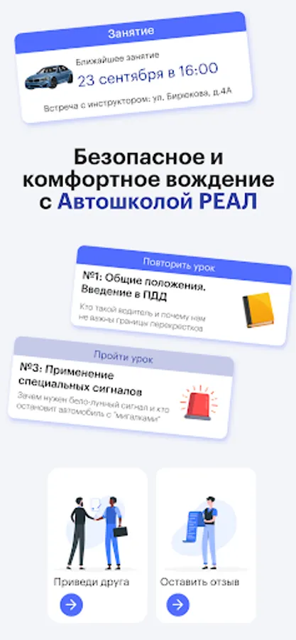 Driving school "REAL" was created by GEGE Finance Group LLC - a modern and dynamically developing company that puts the quality of service in the first place. Thanks to this, in the ranks of our employees you will be able to see only professional teachers and instructors. The professional and close-knit team of the REAL driving school is aimed at improving the quality of driver training. We strive to ensure that the students of our driving school not only learn how to drive a car, but also know how to properly respond to any difficult and extreme situation on the road.