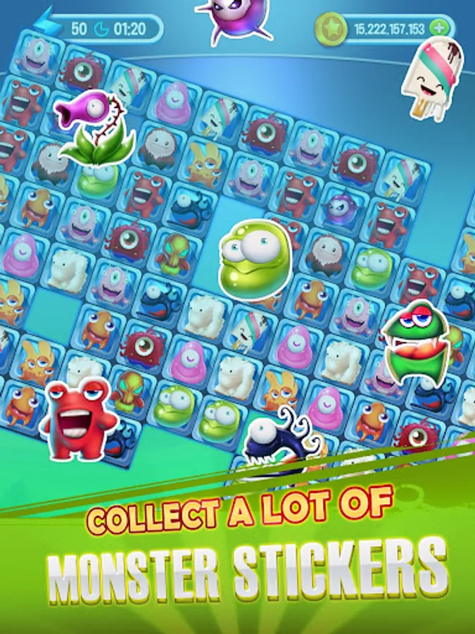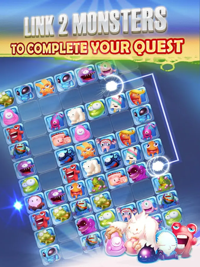 Clear boards by connecting 2 monsters with up to 3 straight lines.