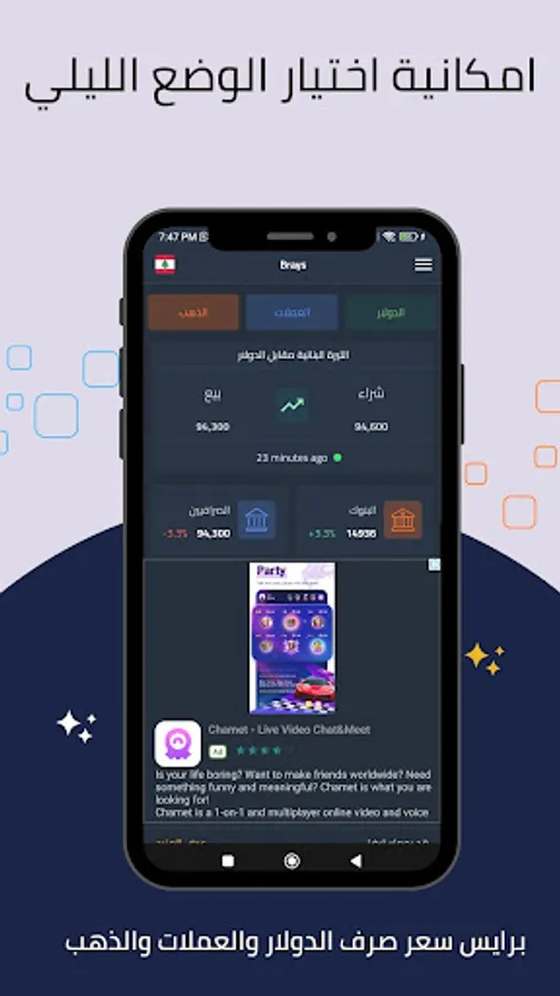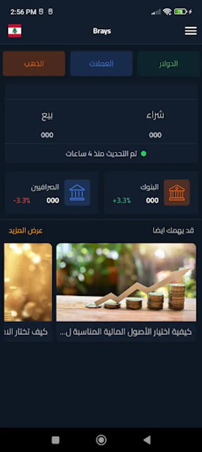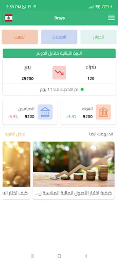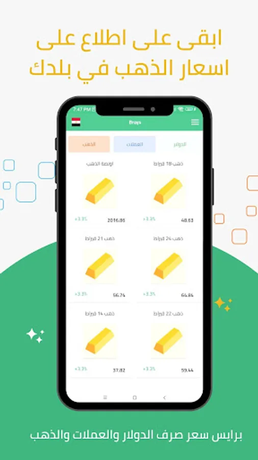The "Price" application is the perfect application for anyone who wants to know the price of the dollar, gold and other currencies in all Arab countries. like :