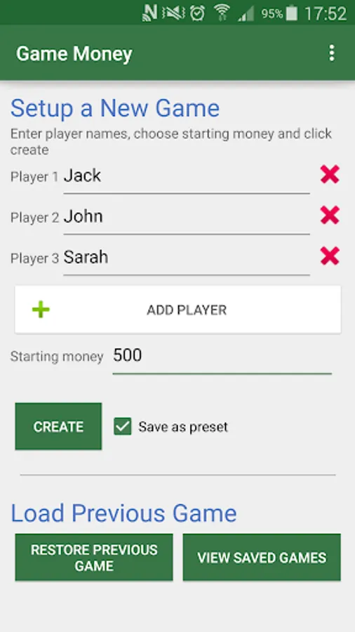 NOTE: This app is NOT a game. It is a way of keeping track of players money for a game.
