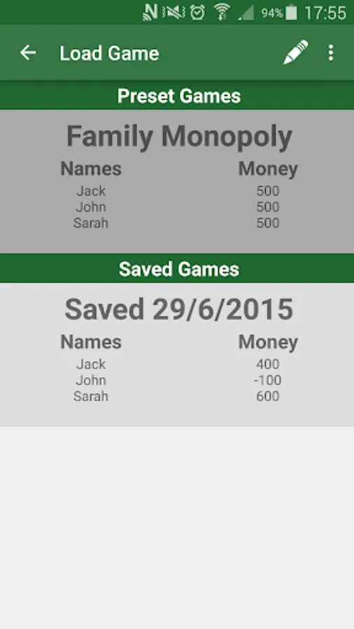 Game Money makes board games easier to play, easier to pack up and harder to cheat!! With a log feature telling you exactly what changes have been made it is easy to correct any mistakes. And no more "Did I collect £200 as I passed GO?" as this can easily be checked.