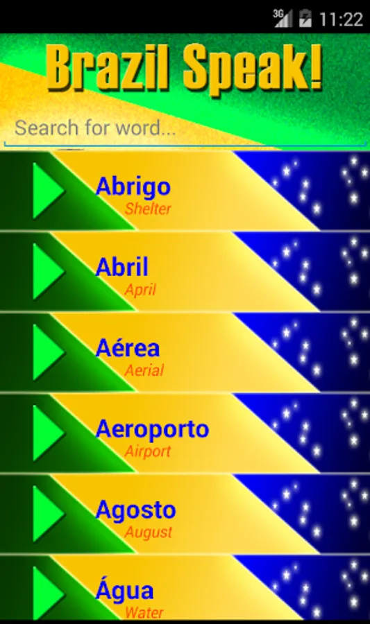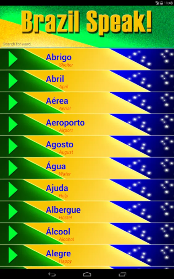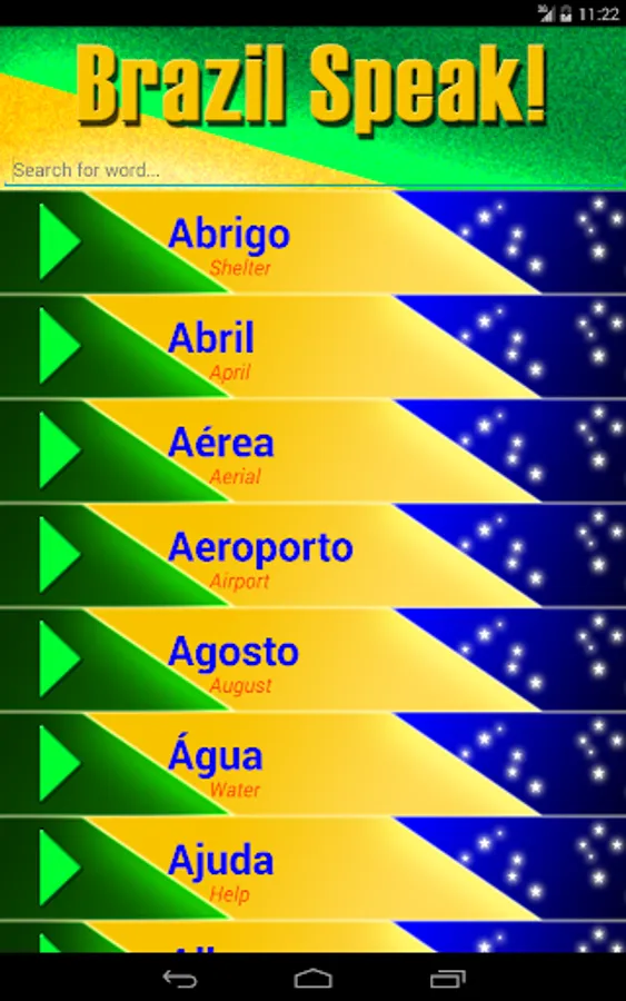 Search and hear the word you need to say in Portuguese, in a single tap!