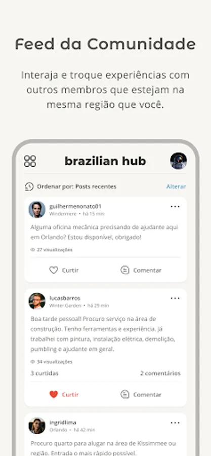The community feed is the place where you can interact and connect with other users in the same region as you, asking for recommendations from professionals, clarifying your doubts, exchanging experiences and much more!