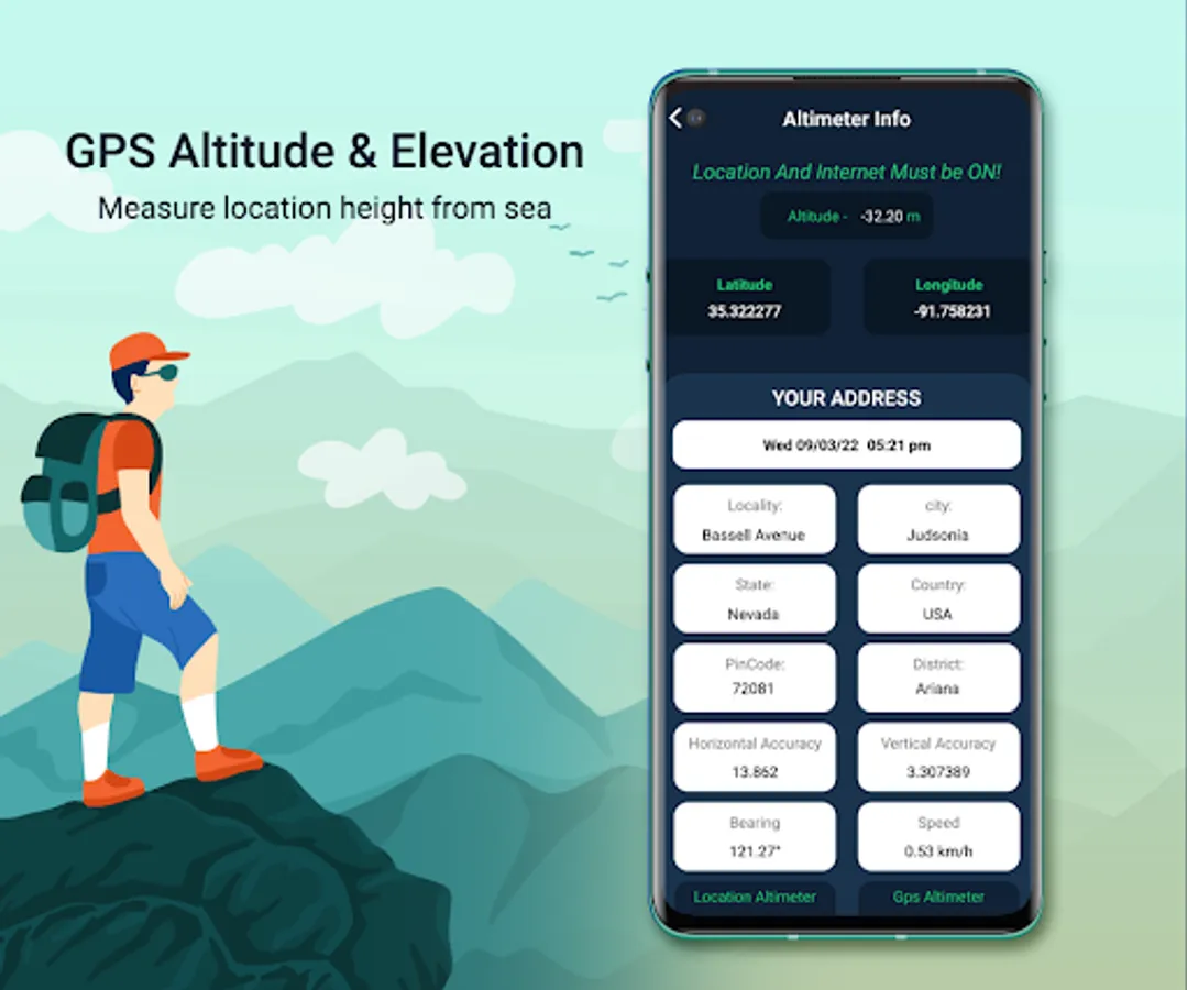 -> There is a map altimeter that will retrieve the map of your present location and then provide you with address and altitude information depending on that place.