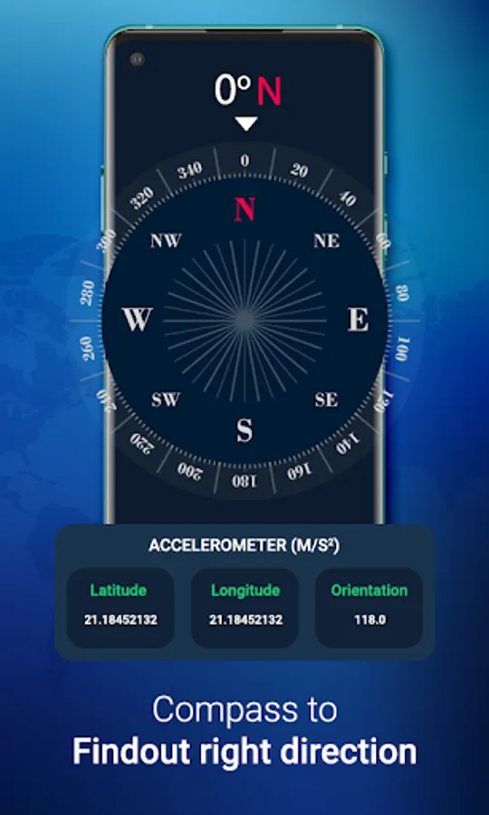 The precise compass displays information on the longitude, latitude, and orientation of the magnetic field.